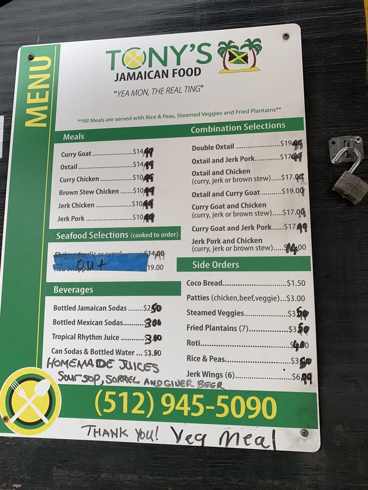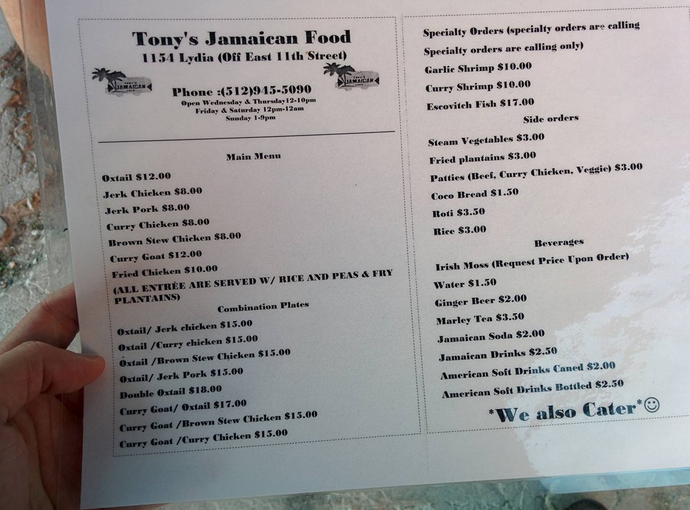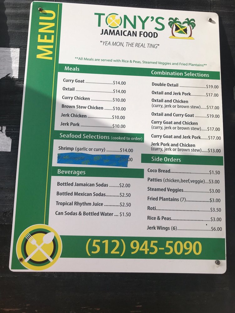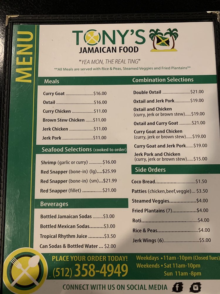 Tony's Jamaican Food Austin Menu (Update 2025)